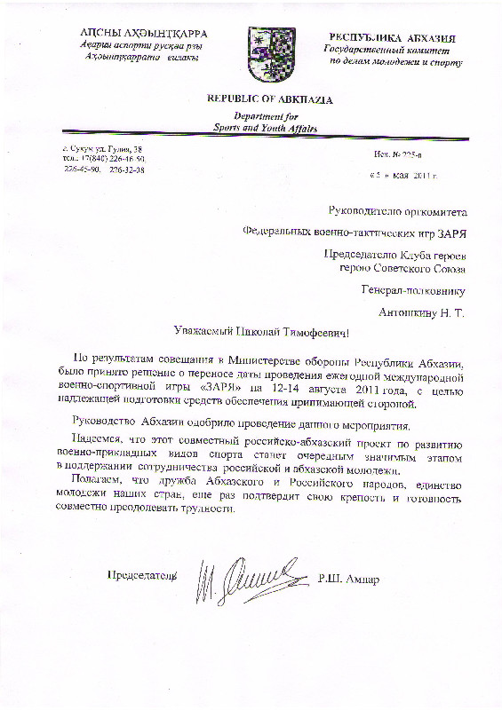 Получено письмо от Комитета по делам молодежи Абхазии.