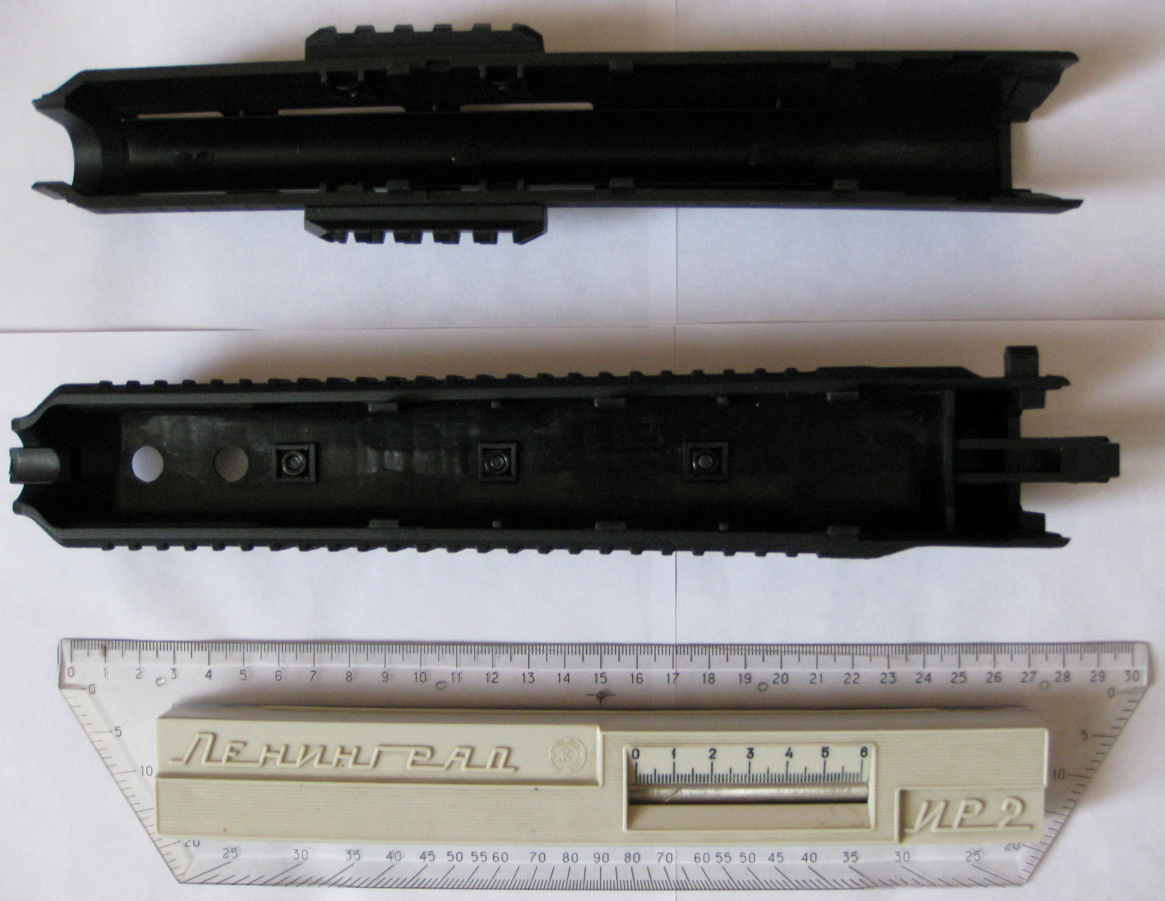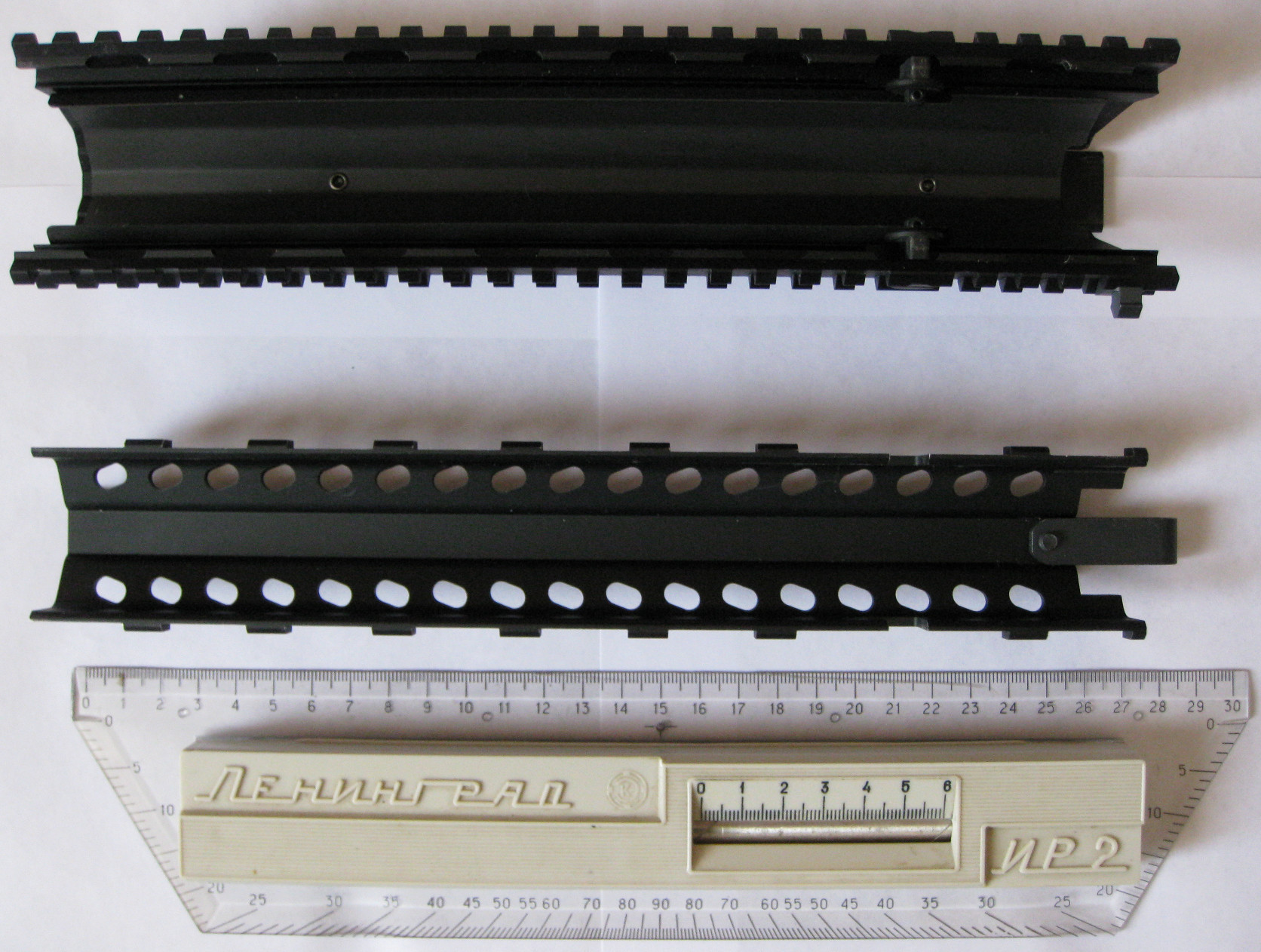 Верхняя часть цевья снимается после поворота двух фиксирующих винтов, расположенных на верхней части цевья, с левой и справой стороны соответственно.