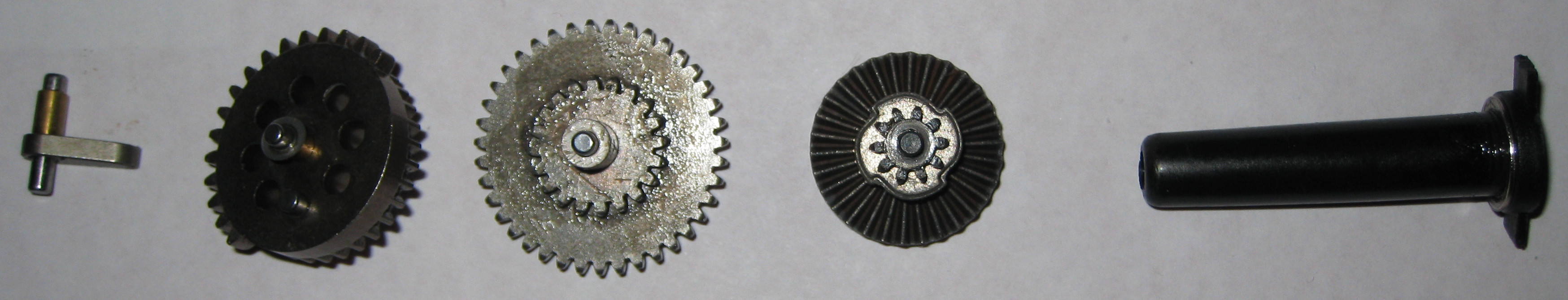 1. Отсоединить все шестеренки, с правой и с левой части гирбокса, отвечающие за управление режимом ведения огня (благо они практически ни на чем не держатся :D)