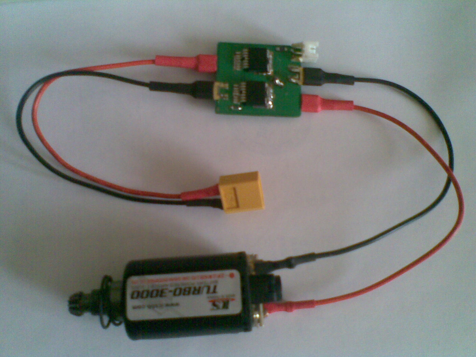 Для выяснения нагрузок, на которые должен быть расчитан электронный ключ, было измерено сопротивление обмоток электродвигателей, которое составило 0.4-0.5 Ом. Это показывает, что максимальный ток, протекающий через обмотку электродвигателя, при использовании батарей на 3-х элементах A123 18650 или 26650, не может превышать 27 A.