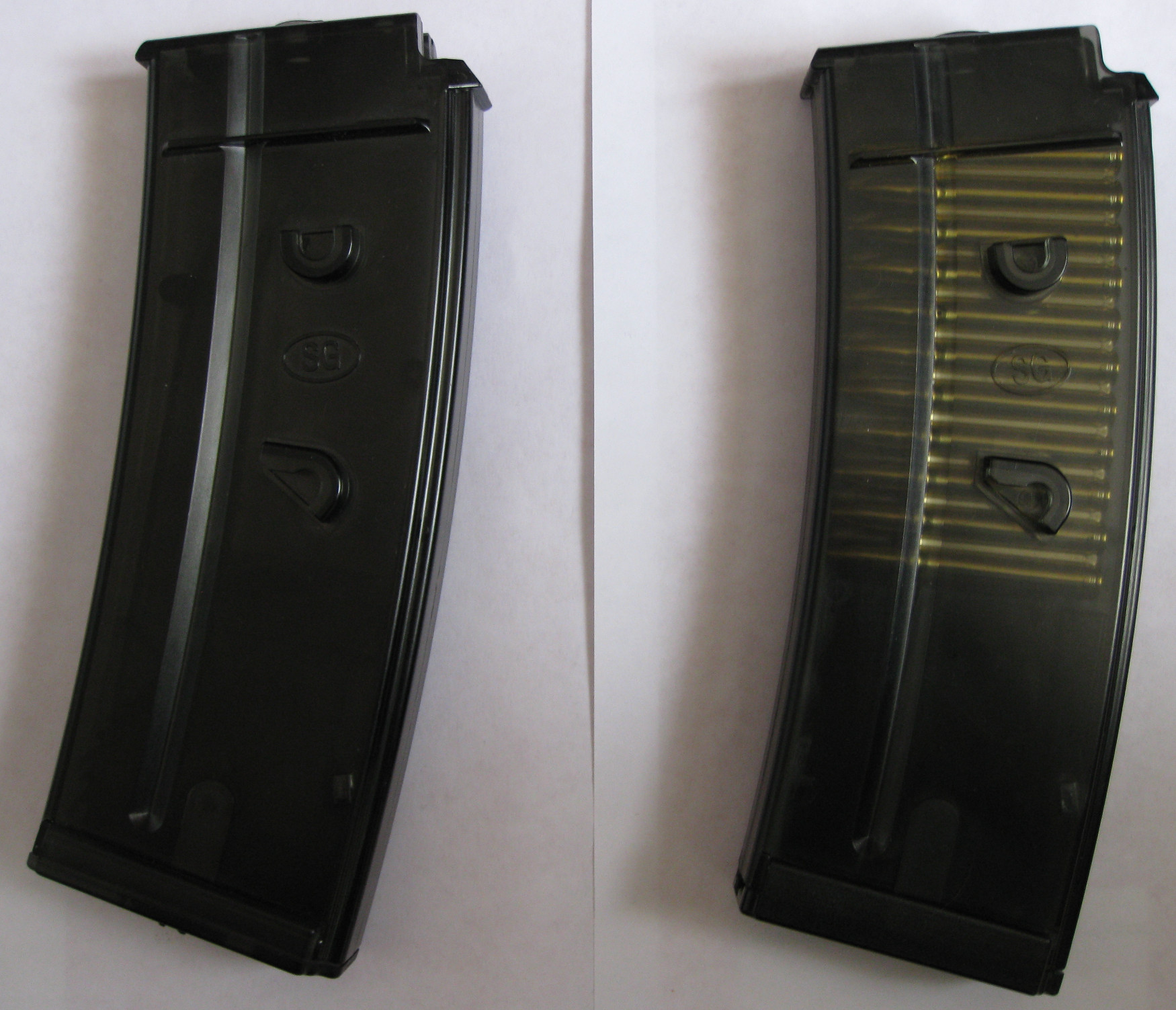 Т.к. в магалин не удается загрузить более 35 шаров, то почему бы не попробовать магазин от Tokyo Marui для SIG 552 ?!