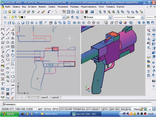 В связи с тем, что работаю в простой жизни архитектором, -в специальной программе AutoCAD 2006 создал трехмерную модель , в масштабе 1:1, своего будущего гранатомета