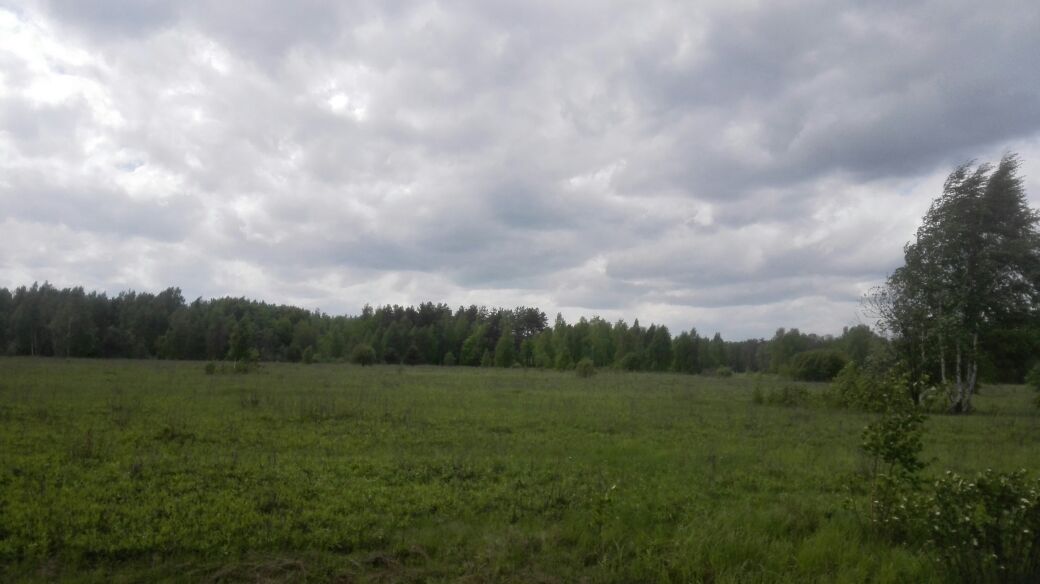 Выезжаем из населенного пункта, перед нами поле с перелесками, едем прямо, дорога будет уходить вниз.