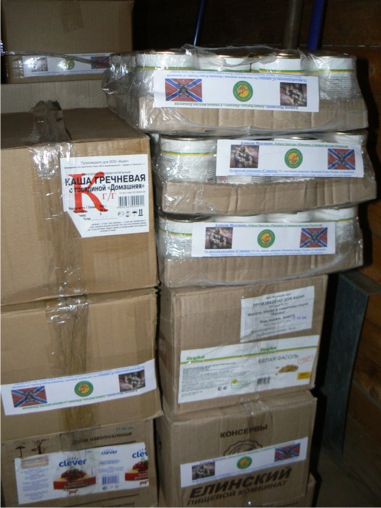 Во вторник (04.12.2014) отвезли груз помощи на склад Глеба Корнилова, опять же адресованный для Алексея Мозгового, его бригады "Призрак" и мирных граждан. С учетом мирных граждан и закупался груз. Так же была передана просьба, поделиться с гражданским населением продовольствием, хотя бы 50 на 50.