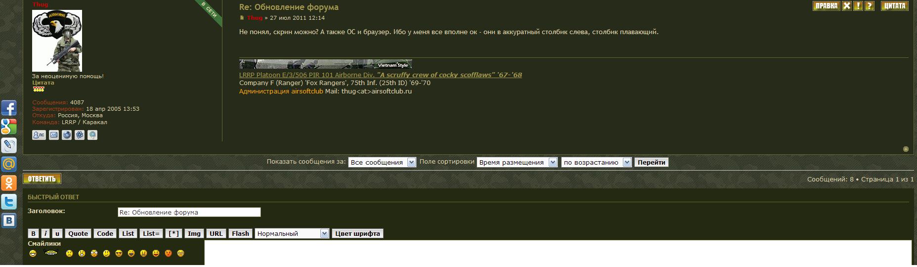 [quote="Thug"]Не понял, скрин можно? А также ОС и браузер. Ибо у меня все вполне ок - они в аккуратный столбик слева, столбик плавающий.[/quote]