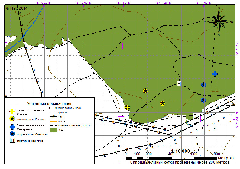 Сценарий симметричный: 2 стороны ("северные" и "южные" ) + одна небольшая игротехническая сторона "местные" (одна команда , 5-10 человек).