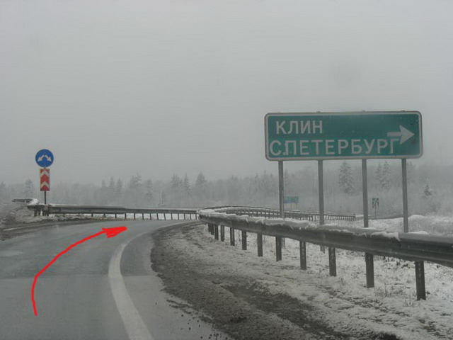 Едем по Новорижскому ш. около 55 км от МКАД до третьей бетонки, указатель «Клин. Санкт-Петербург».