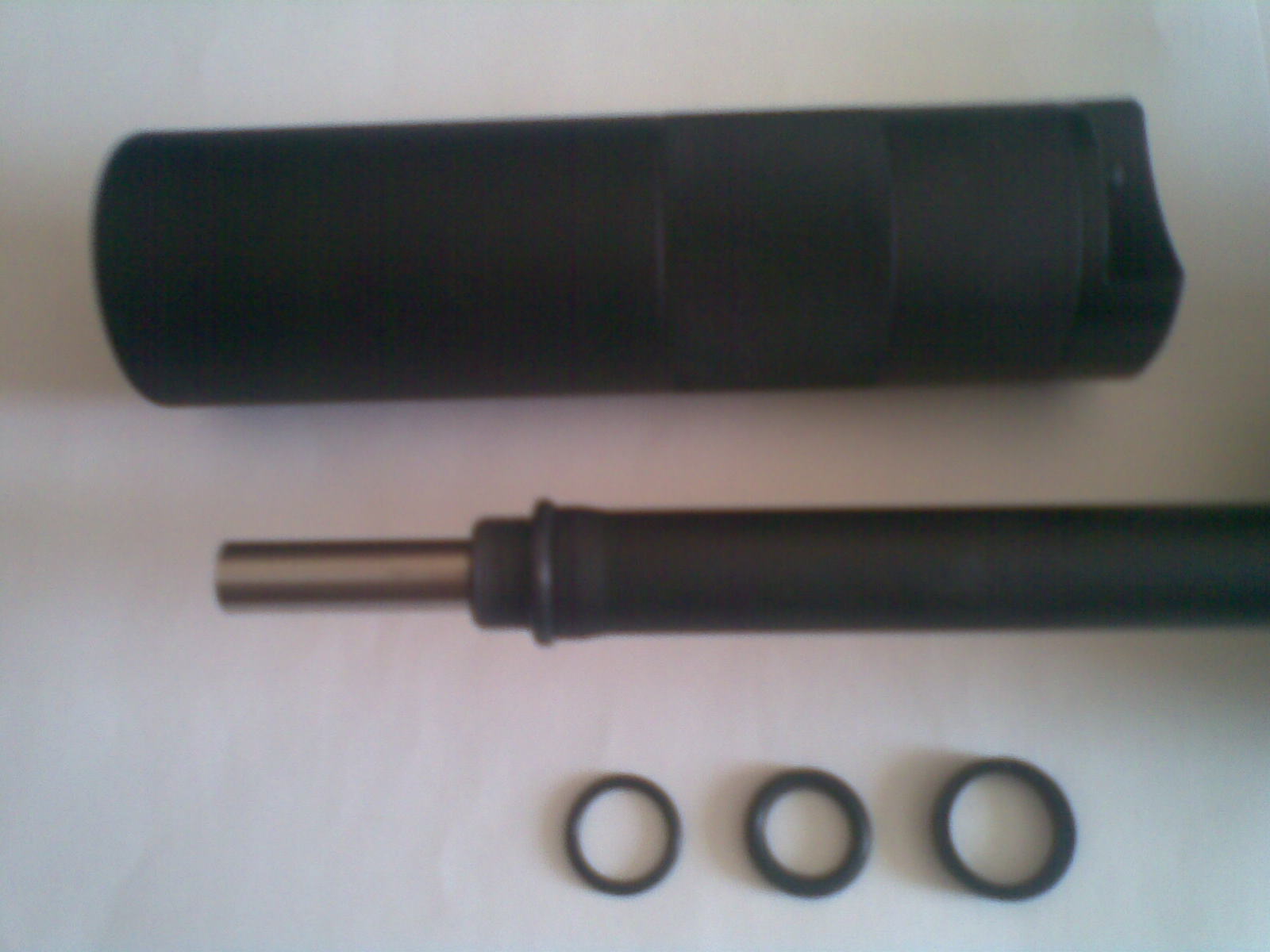 Но как оказалось проблема просто лечится. Берется пластиковое кольцо из комплекта "глушителя", одевается на резьбу внешнего стволика и вроде бы все должно быть OK, но слишком оно тонкое нужно еще немного - смотрим, а на внешнем стволике одета заводская резинка, О-Ring называется, если не ошибаюсь. Вспоминаю где - же я такое видел - а видел я его где-то в сантехнике.